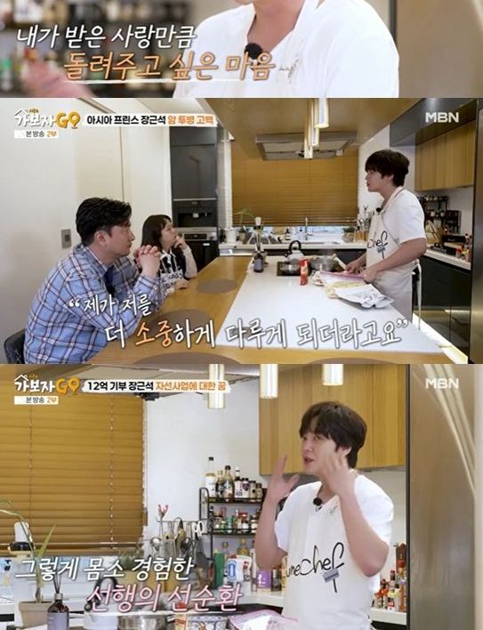 특히 장근석은 "모교인 한양대에 12억 원을 기부했는데, 그때 후배들 공부 더 잘할 수 있게 해주고 싶다. 그러다 몸이 안 좋게 돼서 한양대 병원을 갔는데 기부를 한 명단을 보고 좋은 조건으로 수술을 할 수 있게 됐다. 제가 베풀고자 했던 것들이 결국 저한테 돌아온다는 것들을 너무 크게 느꼈다. 이런 게 하늘이 정해놓은 규칙 같은 건가"라고 말했다.