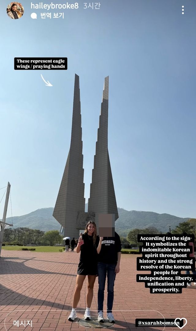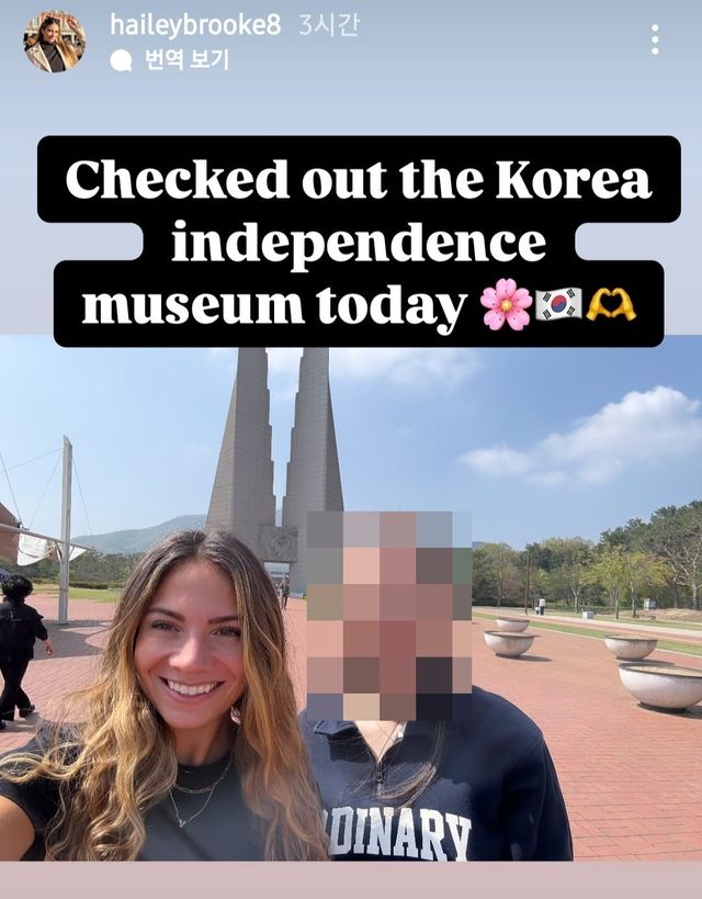 한화 이글스 외인 투수 라이언 와이스의 아내 헤일리 브룩 와이스(헤일리)가 천안에 있는 독립기념관을 찾은 뒤 일제 강점기 한국사에 공감해 화제다.