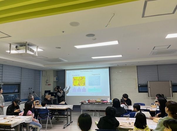 4월에 진행한 첫 수업에서는 ‘아로마 향초 만들기’를 통해 20가지의 아로마 향을 맡아보고 나를 표현할 향을 직접 조향하는 등 세상에서 하나뿐인 나만의 아로마 향수를 만드는 시간을 가졌다.