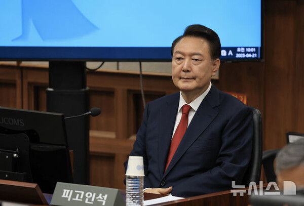 뉴시스 보도에 따르면, 윤석열 전 대통령이 21일 자신의 내란 우두머리 혐의 사건 두 번째 공판에 출석했다. 카메라를 외면하던 윤 전 대통령은 재판이 시작되자 눈을 감고 침묵했다.