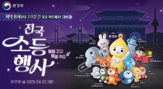 이번 소등행사는‘해보자고 기후행동! 가보자고 적응생활!’이라는 2025년 기후변화주간 대표 캠페인으로, 온실가스 감축에 대한 공감대 형성과 에너지 절약 실천 분위기 조성을 위해 전국에서 동시 진행된다.