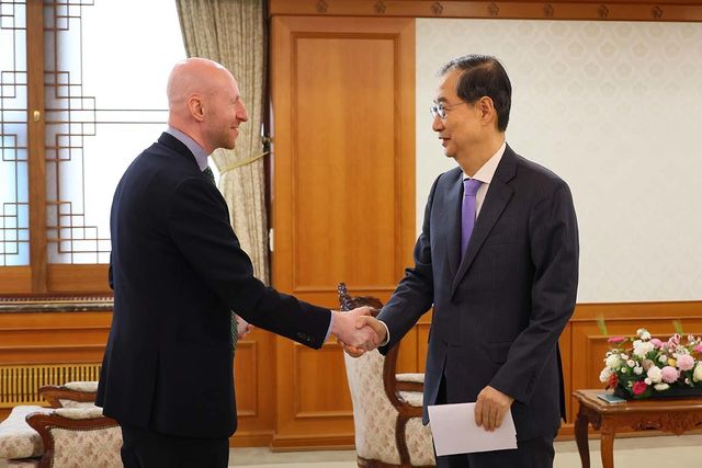 한덕수 대통령 권한대행 국무총리가 지난 17일 서울 종로구 정부서울청사에서 영국 언론사 파이낸셜 타임스와 미국의 관세조치에 대한 대응, 국정 운영 및 안보 정책 방향 등에 대한 인터뷰를 하고 있다. / 총리실 제공