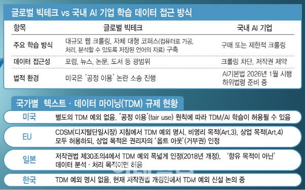 이러한 이유로 중소 AI 기업들은 웹 크롤링을 통한 텍스트·데이터 마이닝(TDM) 방식으로 학습을 시도하고 있으며, 일부 기업은 불법적으로 거래되는 데이터에 의존하는 사례도 발생하고 있다.