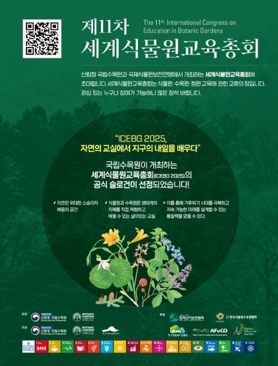 [와이뉴스] 산림청 국립수목원(원장 임영석)은 제11차 세계식물원교육총회(ICEBG 2025)의 개최를 50일 앞둔 오늘, 공식 슬로건 “ICEBG 2025, 자연의 교실에서 지구의 내일을 배우다”를 선정하여 누리집을 통해 공식 발표했다.