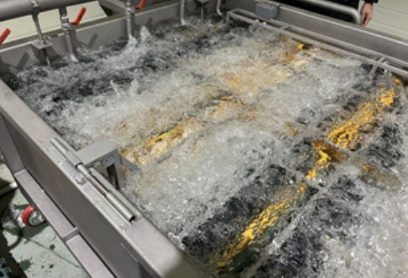 △대용량 권지 세척 탈수 장치= 권지는 하루 최대 2~3만 장 사용되는 농자재이다. 제대로 씻지 않으면 유해 미생물 확산 위험이 커진다. 기존에는 낱장으로 씻어 노동력과 시간이 많이 들었으나 이 장치를 이용하면 20분에 5,000장까지 씻을 수 있다. 세척 후 남은 물기도 빠르게 제거할 수 있다.