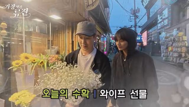 마지막으로 들른 문구점에서는 아내의 취향을 저격할 예쁜 노트를 발견했다. 류진은 아내가 좋아하는 안개꽃도 한가득 품에 안았다. 남편이 고르고, 아들이 전한 선물과 손편지를 받은 아내는 크게 감동한 모습이었다.