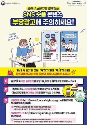 식약처는 누리소통망(SNS)에서 다양한 정보를 자유롭게 얻을 수 있는 만큼 부당광고에 쉽게 노출될 수 있으므로, 소비자는 숏폼 콘텐츠 등 부당 광고에 현혹되지 않도록 주의하고 제품의 허가 정보를 식품안전나라 또는 의약품안전나라에서 확인 후 구매할 것을 당부했다.