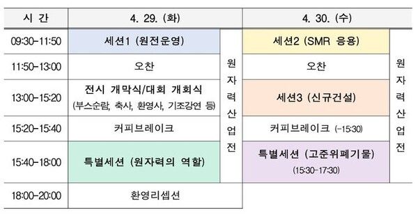 각 세션에서는 계속 운전, 탄소중립, AI, 에너지 안보, 소형모듈원전(SMR), 방사성폐기물 등 다양한 글로벌 현안과 최신 기술 동향을 심도 있게 다룰 예정이다.