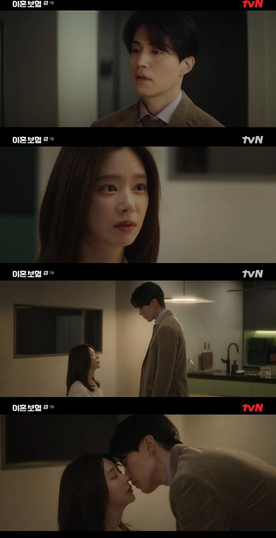 21일 방송된 tvN 월화드라마 '이혼보험' 7회에서는 노기준(이동욱 분)이 강한들(이주빈)에게 키스하기 위해 다가간 모습이 그려졌다.