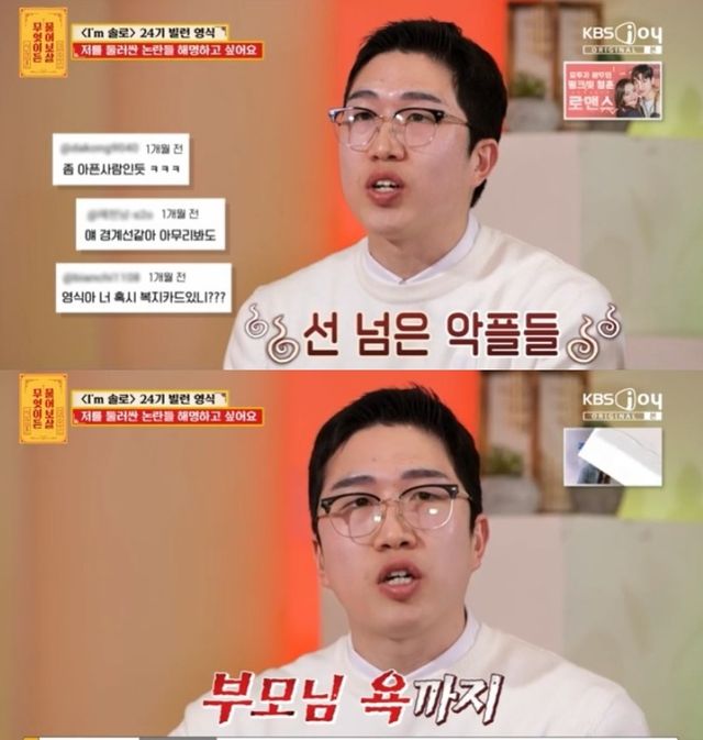 방송이 전파를 타고 나서 영식은 부모님을 향한 악플까지 받으며 "일부러 댓글을 안 보려고 했는데 일상생활이 힘들었다"고 곱개했다.