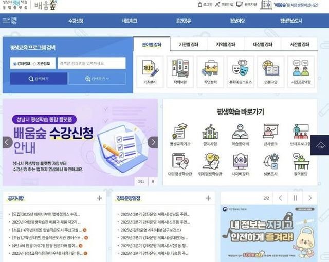 한편 ‘배움숲’은 인터넷 포털사이트에서 ‘성남시 배움숲’을 검색하거나 시 홈페이지에서 손쉽게 접속할 수 있다.