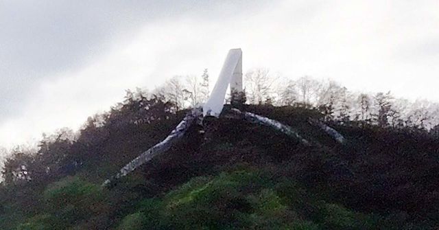 21일 오후 전남 화순군 도암면 우치리 화학산에 건설된 4.7MW(메가와트)급 풍력발전기 타워가 쓰러져 있다. / 연합뉴스