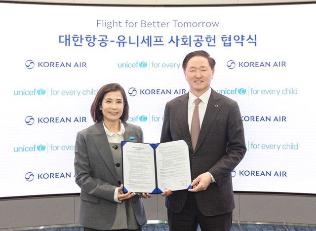 협약식은 전날 오후 서울 강서구 대한항공 본사에서 우기홍 대한항공 부회장, 조미진 유니세프 한국위원회 사무총장 등 주요 관계자들이 참석한 가운데 열렸다.