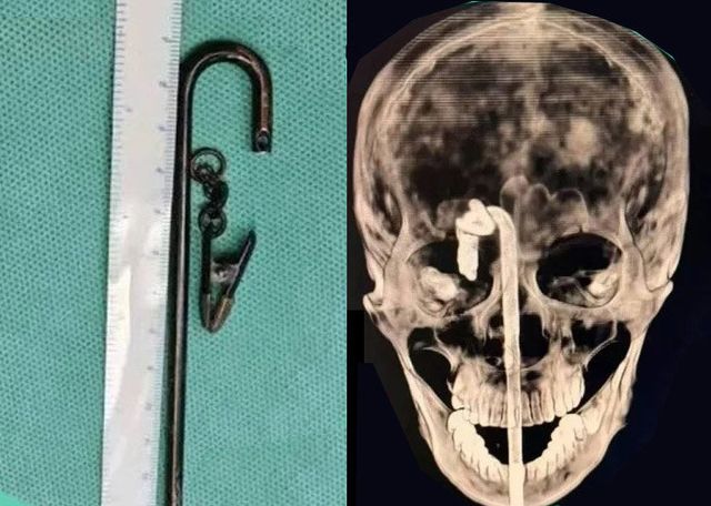 엑스레이 검사 결과, 막대는 코와 눈 부위를 지나 뇌까지 침투해 있었다. 뇌의 주요 혈관과 불과 2mm 떨어진 곳까지 박혀 있었다.