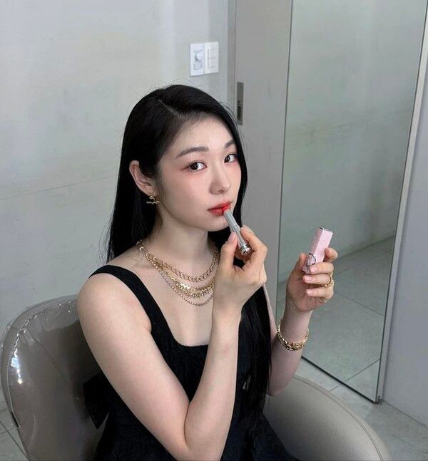 한 명품 브랜드의 레드 립스틱을 바르는 모습도 공개했다.