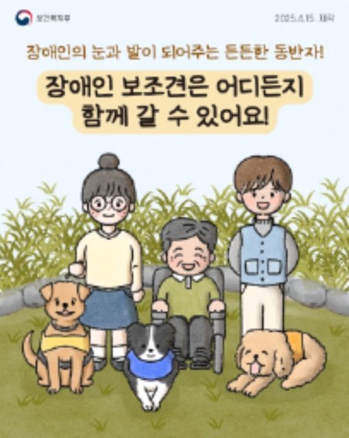 [와이뉴스] 보건복지부는 4월 23일부터 장애인 보조견 동반출입 관련 '장애인복지법 시행령·시행규칙'일부 개정령이 시행된다고 밝혔다.2024년 10월 22일 개정된 '장애인복지법'에 따라, 그 시행을 위한 후속 조치로 시행령, 시행규칙을 개정했다.