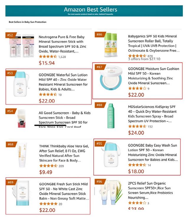 현재 아마존에 입점된 궁중비책 선케어는 △워터풀 선로션(SPF 40) △모이스처 선쿠션(SPF 50) △이지워시 선로션(SPF 30) △프레시 선스틱(SPF 50) 총 4종이다. 모두 징크옥사이드 100% 논나노 무기자차 제품이다. 민감한 아기 피부는 물론 온 가족이 안심하고 사용할 수 있다. SPF 지수, 광범위 자외선 차단 효과, 내수성 테스트 등 OTC 등록을 위한 기준을 모두 충족했다.