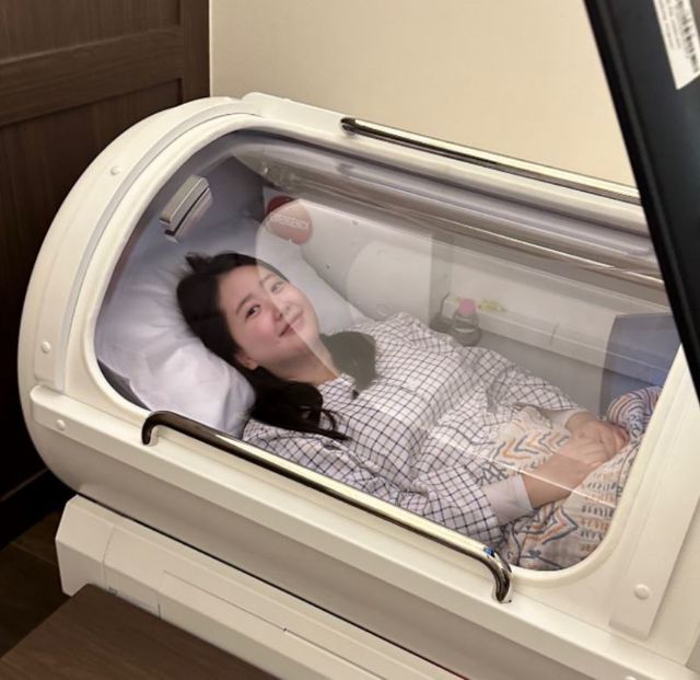 이어 "산소챔버에 들어가서 60분동안 편안하게 누워만 있으면 노화 관리 , 상처 치유 회복 , 수면 개선, 스트레스 관리 등에 도움이 된다고 하는데요. 확실히 받고 나면 컨디션 차이가 나요. 신기합니다"라고 덧붙였다.