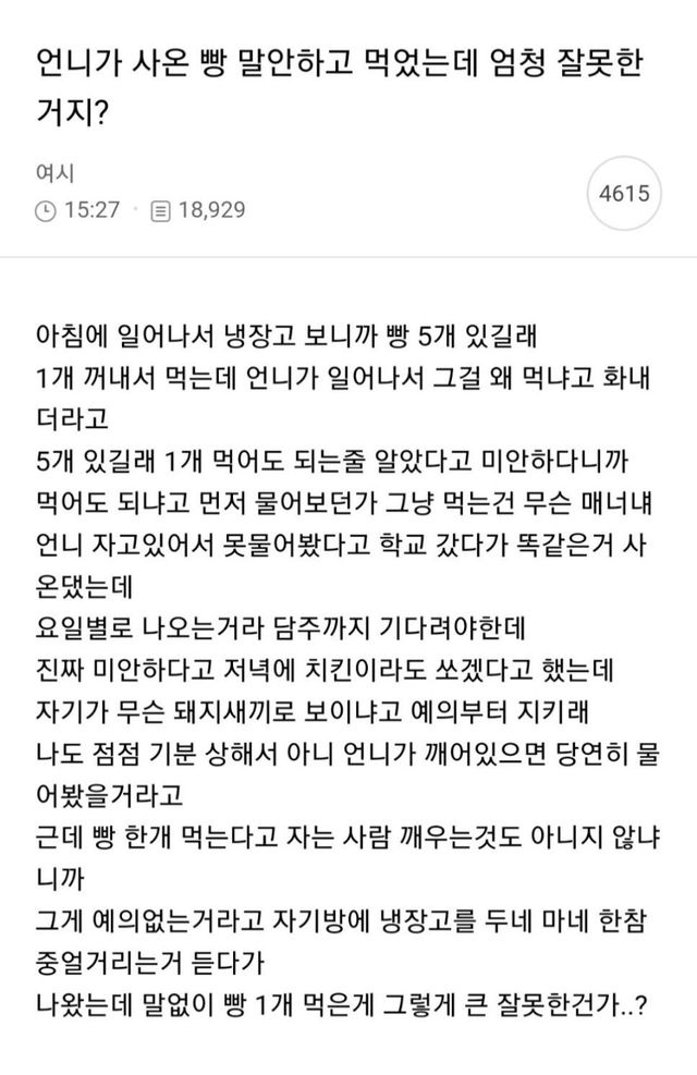 깨워서라도 말하고 먹는 게 맞다, 동생 사과하는 태도가 잘못됐다 vs 가족 사이에 너무 과하다, 언니가 너무 예민하다 등 5천플 가까이 논쟁 중