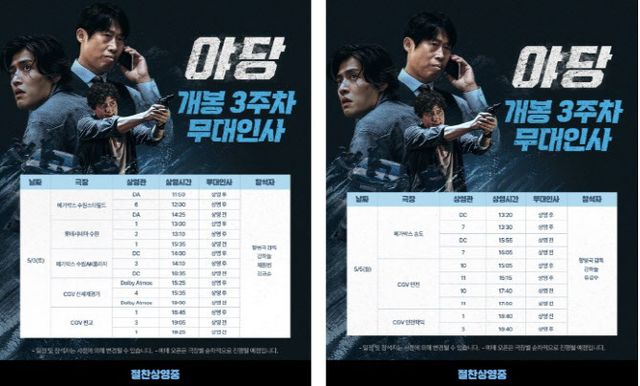 ‘야당’은 대한민국 마약판을 설계하는 브로커 ‘야당’, 더 높은 곳에 오르려는 ‘검사’, 마약 범죄 소탕에 모든 것을 건 ‘형사’가 서로 다른 목적을 가지고 엮이며 펼쳐지는 범죄 액션 영화다. 먼저 5월 2일(금) 스페셜 GV에는 강하늘, 황병국 감독이 참석해, ‘범죄도시’, ‘범죄도시2’, ‘범죄도시3’에서 무술감독, ‘범죄도시4’에서 연출을 맡았던 허명행 감독과의 스페셜GV를 진행하며 관객들과 특별한 시간을 보낼 예정이다. 허명행 무술감독은 ‘야당’에서도 무술감독으로 참여했기에, 이번 GV에서 강하늘, 황병국 감독과 허명행 무술감독이 액션 비하인드를 비롯해 다채로운 이야기를 나눌 것을 기대하게 한다. 5월 2일(금) 오후 6시 20분 롯데시네마 월드타워에서 진행될 스페셜 GV는 바로 오늘(22일) 오후 3시부터 롯데시네마 홈페이지와 모바일 앱을 통해 예매 가능하며 상세한 내용도 확인할 수 있다.