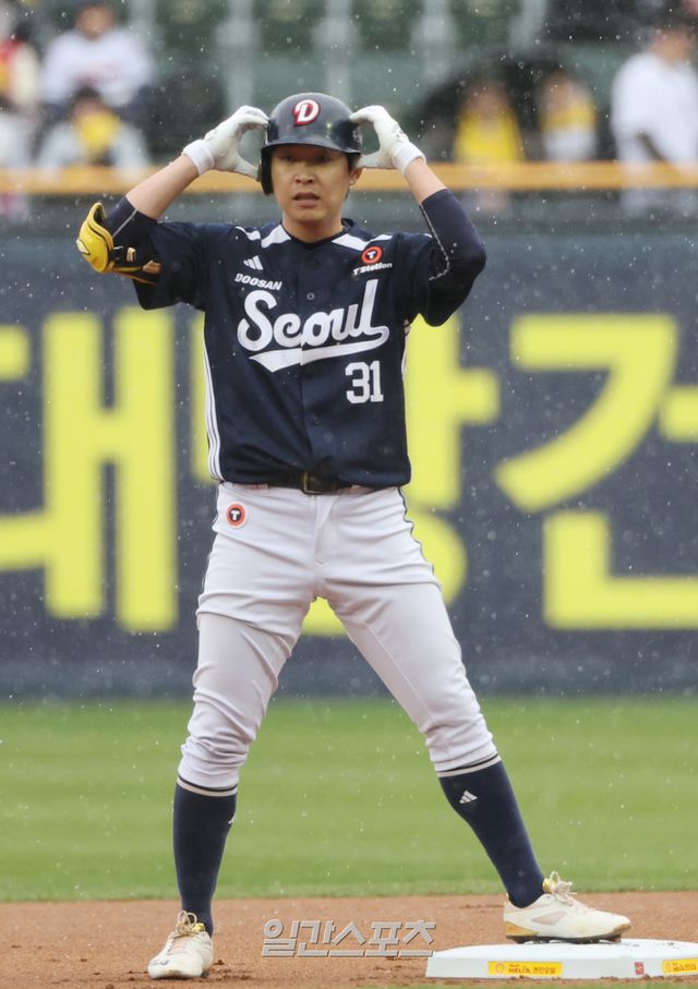 프로야구 통산 1500안타는 정수빈이 50번째다. 두산에서 1500안타를 기록한 타자는 정수빈 이전까지 단 한 명, '두목곰' 김동주(1710개)뿐이다. 홍성흔(2046개) 김현수(2411개) 양의지(1837개) 등 정수빈에 앞서 두산에서 데뷔했던 대형 타자들이 대부분 자유계약선수(FA)로 두산을 떠났던 탓이다. 정수빈과 절친했던 동기 허경민은 지난해까지 1483안타를 쳤으나 올해 KT 위즈로 FA 이적했다.