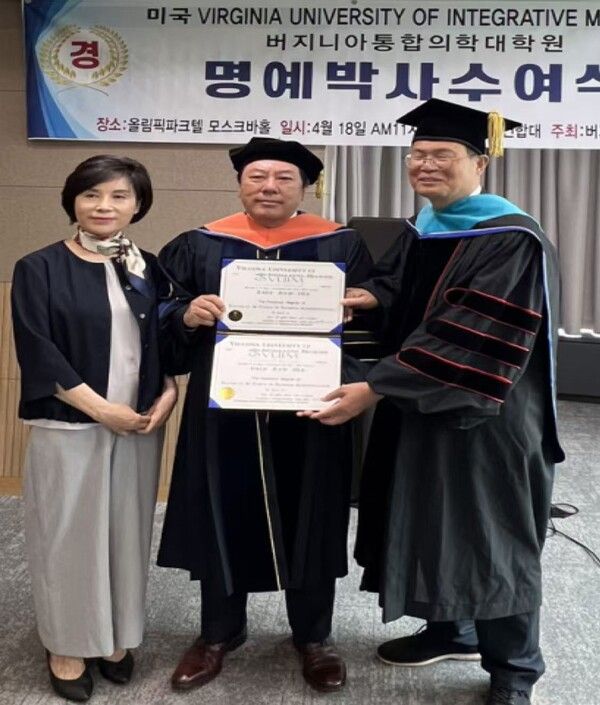 성인가요 전문 케이블TV 아이넷방송그룹의 박준희 회장이 지난 4월18일 서울 송파구 올림픽파크텔 모스크바홀에서 버지니아 통합의학대학원(VUIM: Virginia University of Intergrative Medicine) Jane Kim 창립이사장으로부터 한국 최초로 미국 버지니아 통합의학대학원 AI융합 경영학 명예박사 학위를 받았다.