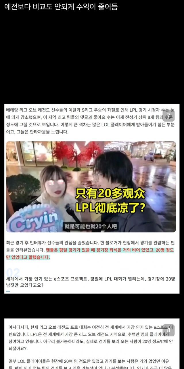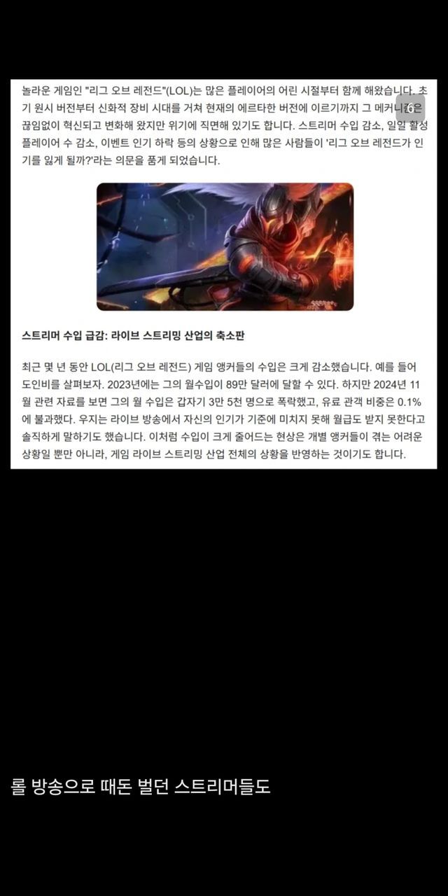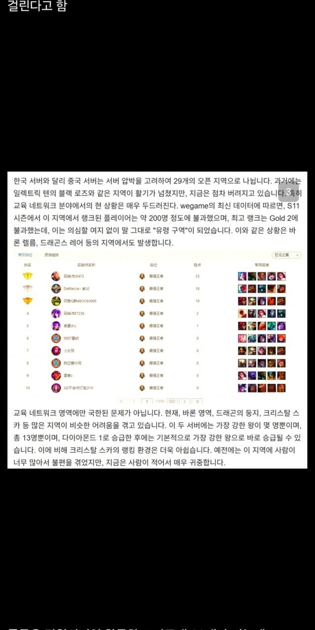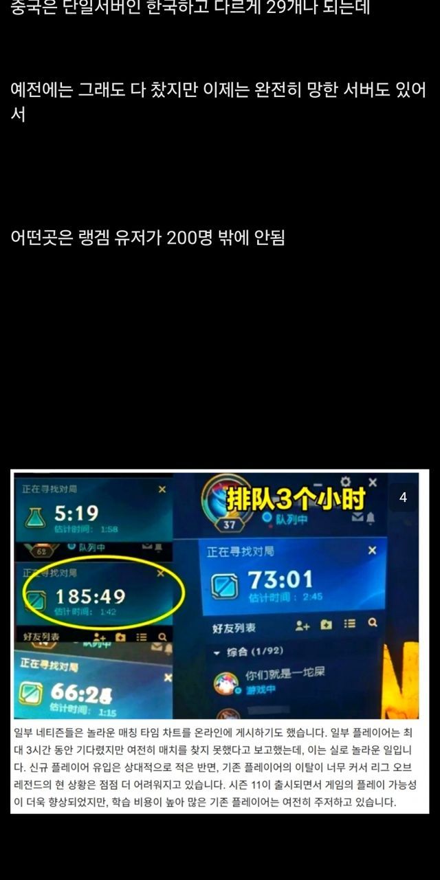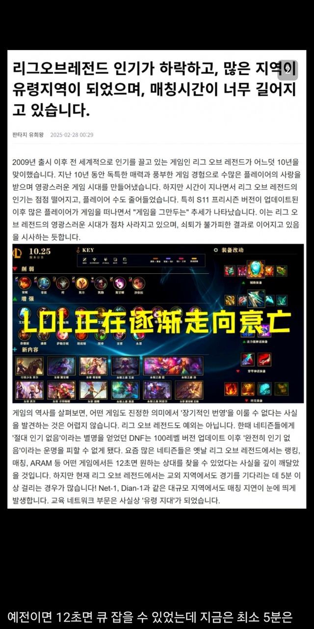 중화에서 인기 급락했다는 리그오브