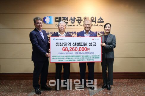 이번 성금은 대전상공회의소 회원사와 임직원이 모금에 적극 참여해 마련된 것으로 대전사회복지공동모금회를 통해 경북과 경남 등 피해가 심각한 지역의 주민들에게 생활 안정 자금과 이재민 긴급구호 물품 지원 등에 우선적으로 쓰일 예정이다.