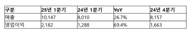 수익성이 높은 북미 지역 성장에 힘입어 HD현대일렉트릭 1분기 실적은 매출 1조147억원, 영업이익 2182억원으로 전년 동기 대비 각각 26.7%, 69.4% 증가했다. 1분기 수주액은 전 분기 대비 68.8% 상승한 13억3500만달러다. 총 수주잔고는 61억5500만 달러로 전분기 대비 11.1% 증가했다. 총 수주잔고 가운데 북미가 64.4%, 중동이 10.5%를 차지했다. 북미 지역 1분기 매출은 3889억원, 수주는 7억4500만달러로 전분기 대비 각각 122.4%, 113.9% 급증했다.