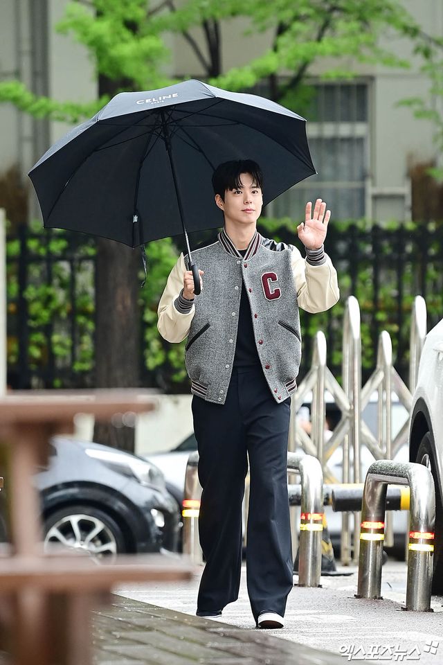 이날 녹화에 참석한 배우 박보검이 출근길에 포토타임을 갖고 있다.