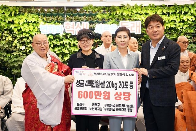 한편, 동래구불교연합회는 어렵고 힘든 저소득 계층을 위해 매년 성금과 성품을 지원하고 있으며, 이번 성금과 성품은 동래구노인복지관과 무료급식소 움트리나눔센터, 아름다운 동행에 전달됐다.
