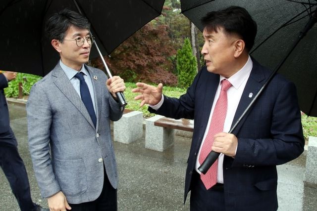 충북도에 따르면, 22일 청남대를 방문한 김완섭 장관과 김영환 지사는 최근 상수원관리규칙 개정에 따른 운영 성과를 확인하고 청남대 발전 방안 및 규제 개선 방향을 논의했다.