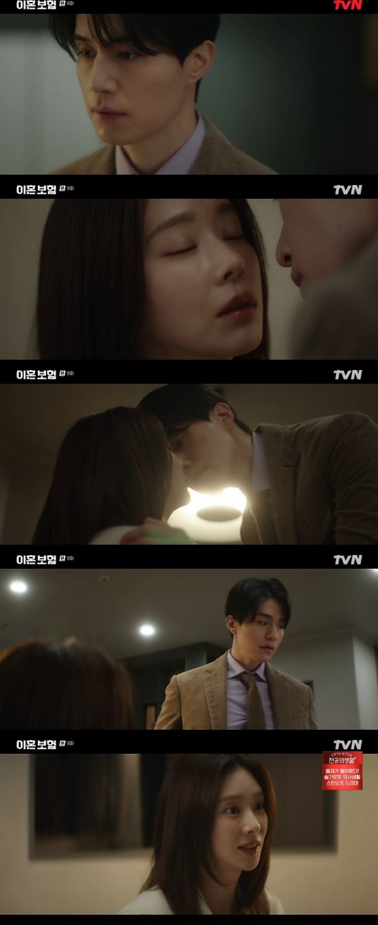 22일 방송된 tvN 월화드라마 '이혼보험' 8회에서는 노기준(이동욱 분)이 강한들(이주빈)에게 키스를 하려다 실패한 모습이 그려졌다.