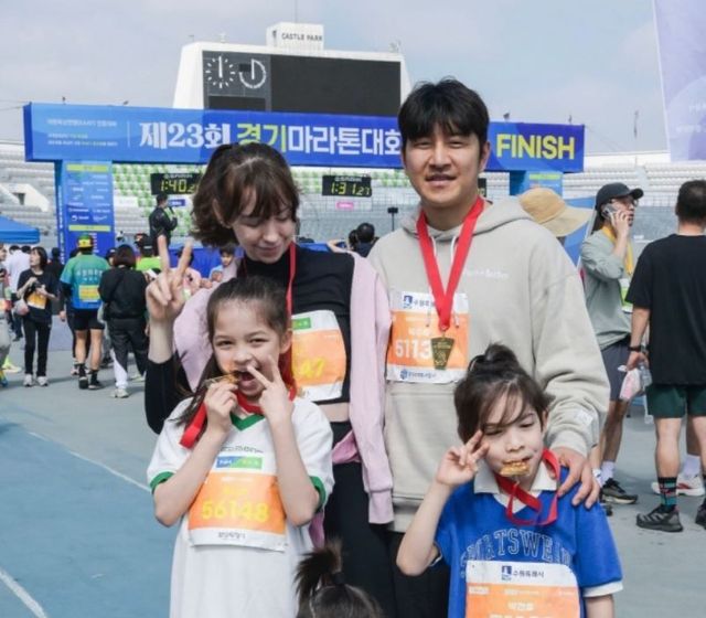 사진에는 지난 20일 열린 제23회 경기 마라톤대회에 참가한 박주호 가족의 모습이 담겼다. 박주호와 아내 안나, 어느덧 훌쩍 자란 삼남매 나은·건후·진우는 모두 메달을 목에 걸고 환한 미소를 지으며 가족이 함께한 첫 마라톤을 기념했다.