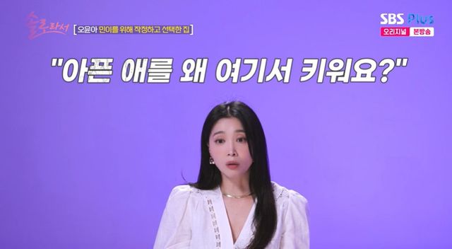 오윤아는 "서울에서 저희 민이를 키울 만한 곳이 없었다. 주변 분들이 너무 불편해하셨다. 아이가 '우~'이러면서 소리를 내니까. '저희 민이가 아파서 그래요' 그러면 '아픈 애를 왜 여기서 키우냐' 그러더라"라며 3층 단독주택에 살게 된 계기를 밝혔다.