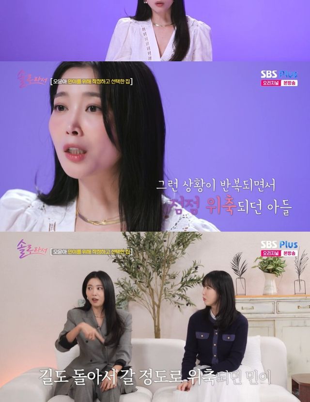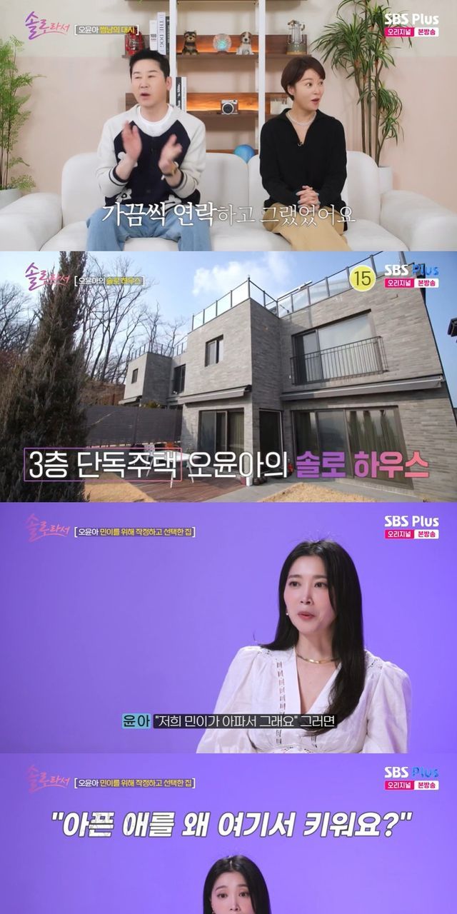 22일 방송된 SBS Plus, E채널 '솔로라서' 16회에서는 오윤아가 아들 송민과 살고 있는 경기도 광주에 위치한 단독주택이 공개됐다.
