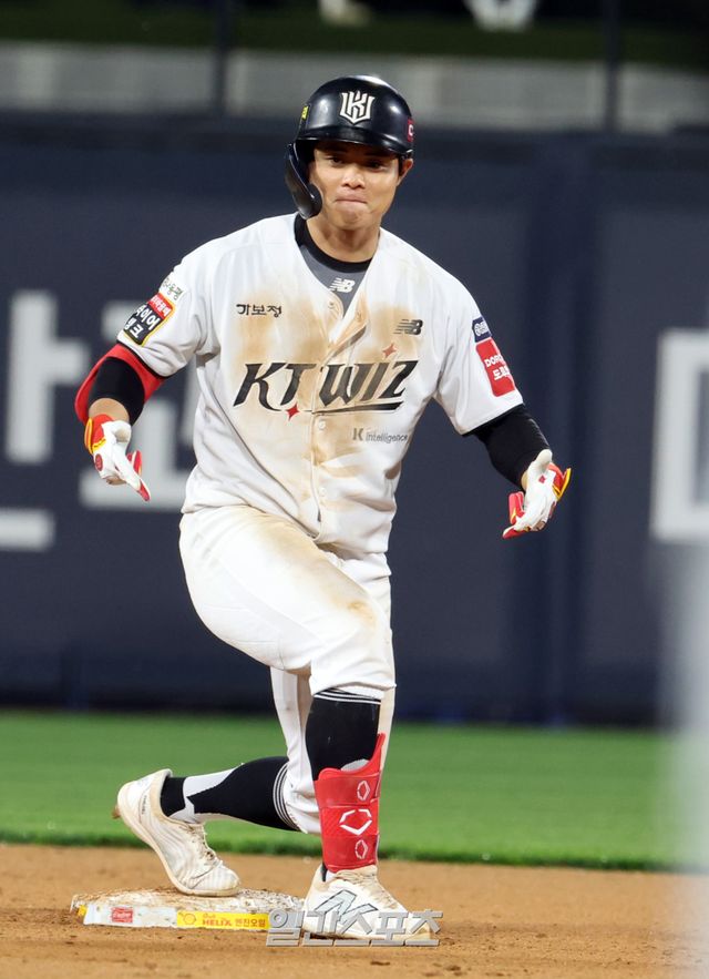 먼저 웃은 팀은 KT였다. 1회 말 선두타자 멜 로하스의 볼넷과 김민혁의 안타로 무사 1, 3루를 만든 KT는 허경민의 적시타로 선취점을 올렸다. 이후 두 타자가 삼진으로 물러났지만, 황재균이 내야 안타로 3루 주자를 불러 들였다. SSG 포수 조형우가 자신의 앞에 떨어진 땅볼을 주우려다 잔디에 미끄러져 송구에 실패한 탓이었다.