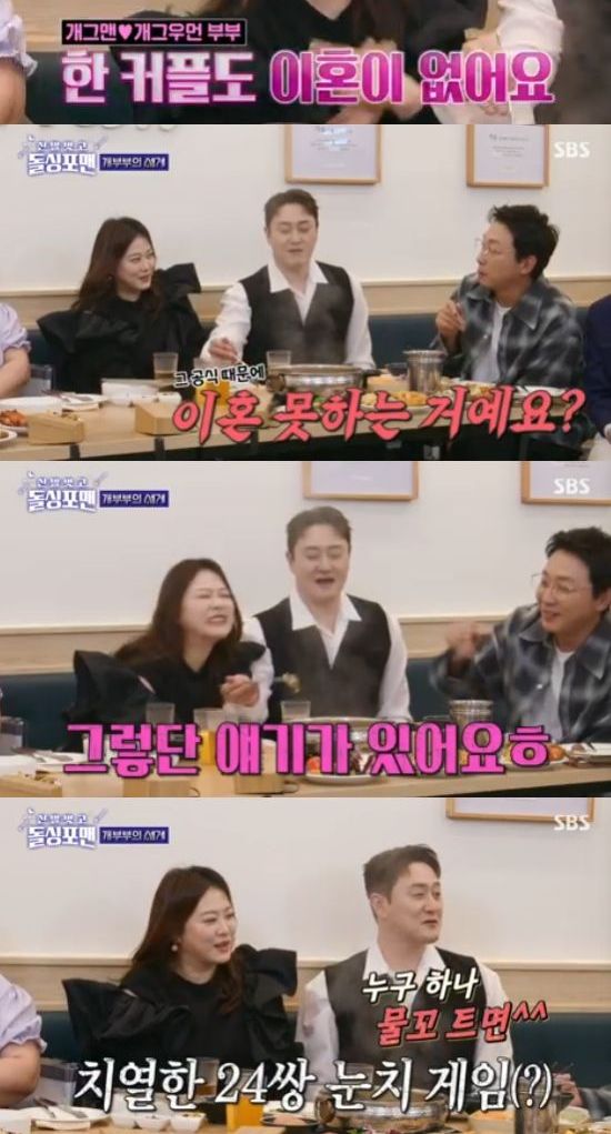 그리고 자연스럽게 개그맨-개그우먼 부부들의 이야기가 나왔고, 심진화는 "개그맨 부부 중에 이혼한 커플이 하나도 없다"면서 뿌듯해했다.
