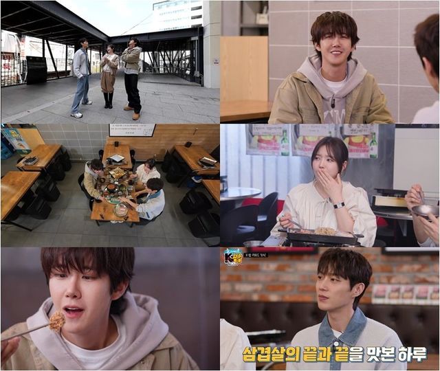 잠시 후, ‘K-밥 11호점’ 후보 맛집에 도착한 3MC는 메인 메뉴로 ‘버터 삼겹살’을 먹는다. 직후 황광희는 “썸 타는 사람에게 이 메뉴를 추천한다”고 하더니, “삼겹살은 원래 마늘을 넣어 쌈을 싸 먹어야 하는데, 오늘은 그런 게 없다. 깔끔한 맛이니까 바로 ‘키갈’ 할 수 있다”며 너스레를 떤다. 먹방 후에도 바로 ‘키스가 가능한 맛’이라는 그의 설명에 조서형은 감탄하고, 황광희는 다시 “나도 ‘키갈’ 해봤으면 소원이 없겠다”라고 외로움을 호소해 짠내 웃음을 자아낸다.