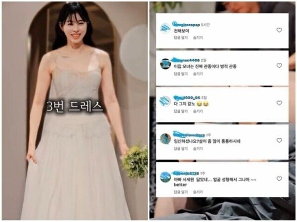 해당 영상에는 서동주의 웨딩 드레스 자태에 대해 "천해보여", "이집 모녀는 진짜 관종이다 병적 관종", "다 그지 같노", "임신하셨나요? 살이 좀 많이 통통하시네" 등 차마 입에 담기 힘든 악플들이 쏟아졌다.