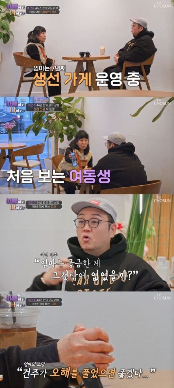 [메디먼트뉴스 김민기 기자] 배우 겸 무속인 이건주가 2살 때 헤어진 친어머니와 44년 만에 감격적인 재회를 이루며 오랜 시간 묵혀뒀던 오해를 풀었다.