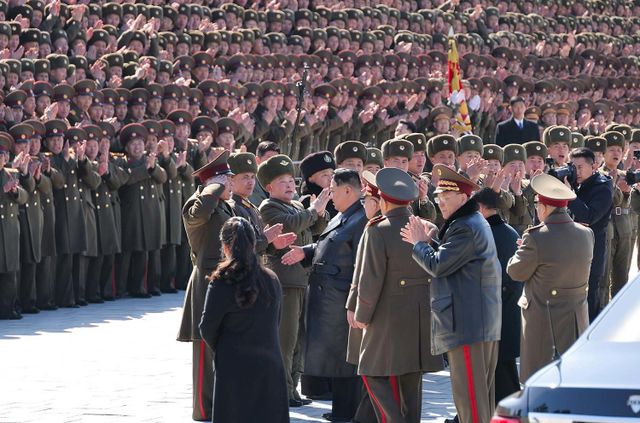 김정은 북한 국무위원장이 지난 2월 24일 김일성정치대학을 방문하는 모습. / 노동신문