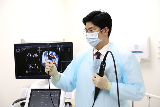특히 이번 장비에는 세계 최초로 개발된 소형 경식도 초음파 탐촉자(Mini-TEE 4D Probe, 모델명: 9VT-D)가 포함되어 있다. 경식도 심장초음파(TEE)는 위내시경처럼 식도를 따라 탐촉자를 삽입해 심장을 근접 거리에서 관찰하는 검사로, 심장 내부의 혈전이나 판막 기능 이상, 감염성 심내막염, 심장 수술 전후의 구조 평가 등을 경흉부 심장초음파(TTE)보다 정밀하게 분석할 수 있다. 검사는 숙련된 순환기내과 전문의가 진행한다.