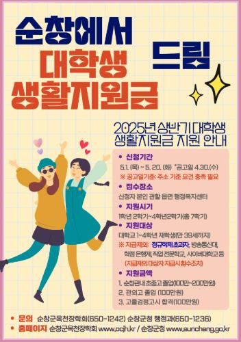 | ▲ 순창군, 상반기 대학생 생활지원금 신청하세요! |
