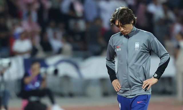 2014년 10월 10일(현지시간) 요르단 암만 국제경기장에서 열린 2026 국제축구연맹(FIFA) 북중미 월드컵 아시아 3차 예선 B조 3차전 대한민국과 요르단의 경기, 대한민국 홍명보 감독이 생각에 잠겨 있다 / 뉴스1