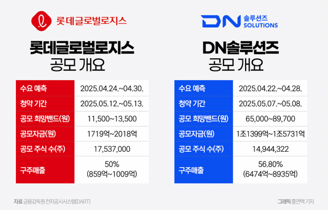 23일 금융투자업계에 따르면 롯데글로벌로지스와 DN솔루션즈는 각각 다음달 코스피 시장 상장을 목표로 하고 있다. 두 기업 모두 국내 대기업 계열사로 공모 물량 중 50% 이상이 기존 주주의 구주매출로 채워져 있다는 공통점이 있다. 다만 구주를 매각하는 이유와 배경은 상이하다.