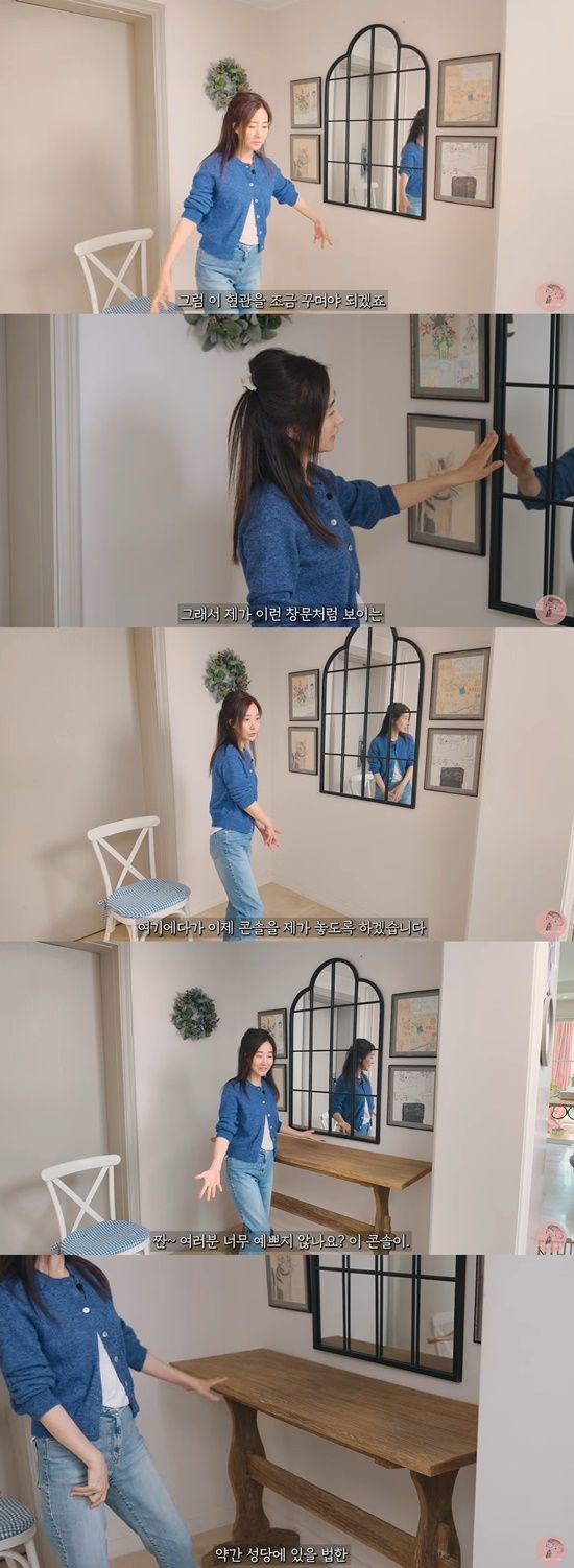 그는 "항상 이사를 갈 생각을 하면 현관을 굉장히 중요하게 생각한다"며 "인테리어 팁이나 포인트는 어느 공간도 그냥 두지 않는다. 어떤 공간이라도 쾌적하고 깔끔하게 관리하는 것"이 인테리어 팁이라고 전했다.