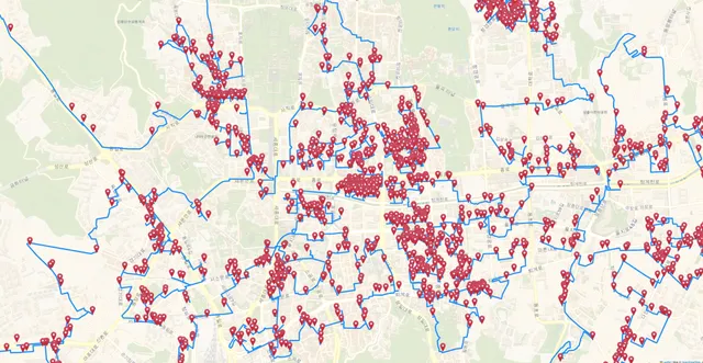 외판원 문제(TSP)를 현실 도로망에 적용해서 푼 사례.