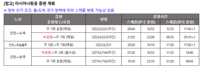 또한, 5월 30일부터는 뉴욕 노선의 야간편에 총 495석 규모의 A380 기종을 투입해 공급을 더욱 늘릴 예정이다.