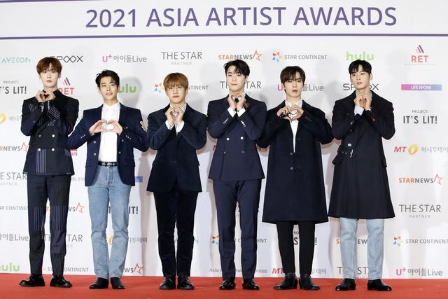 아스트로가 2021년 서울 강서구 KBS 아레나에서 열린 ‘2021 아시아 아티스트 어워즈(AAA)’ 레드카펫 행사에 참석해 포즈를 취하고 있다. / 뉴스1